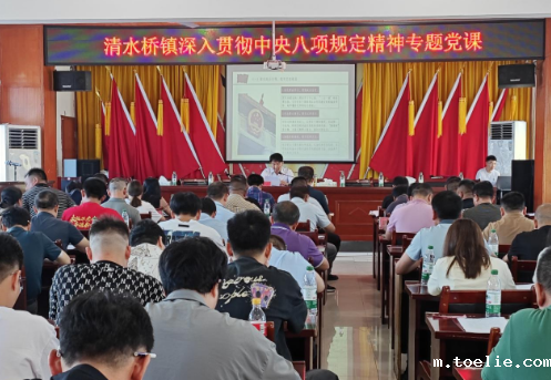6月30日上午,清水桥镇党委主要负责人以《锲而不舍落实中央八项规定精神 以优良作风护航清水桥高质量发展》为题,为全镇干部职工和辖区村(社区)党组织书记讲授深入贯彻中央八项规定精神专题党课。