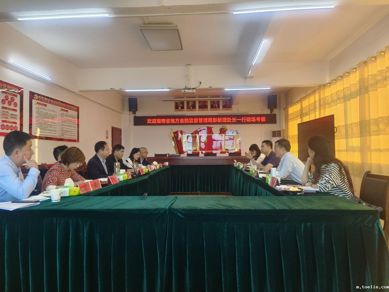 考察组首先参观了公司筹办场所,了解制度建设及各部门岗位分工情况。随后,召开座谈会,县政府办、高新区、县产建投公司等相关负责人参加。座谈会上,县财政局汇报了主发起人基本情况并作出承诺表态,县产建投公司汇报了小额贷款公司筹备情况及未来运营发展规划,县金融办作出承诺表态,与会人员对贷款公司人员配备、业务场景、风控模式等方面展开了探讨。
