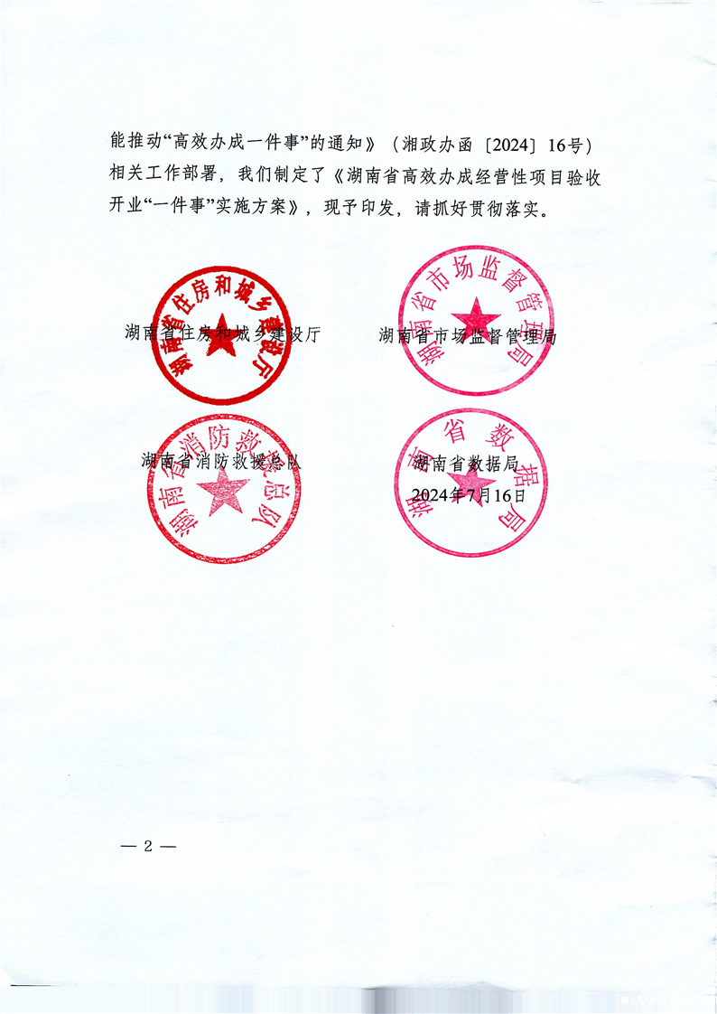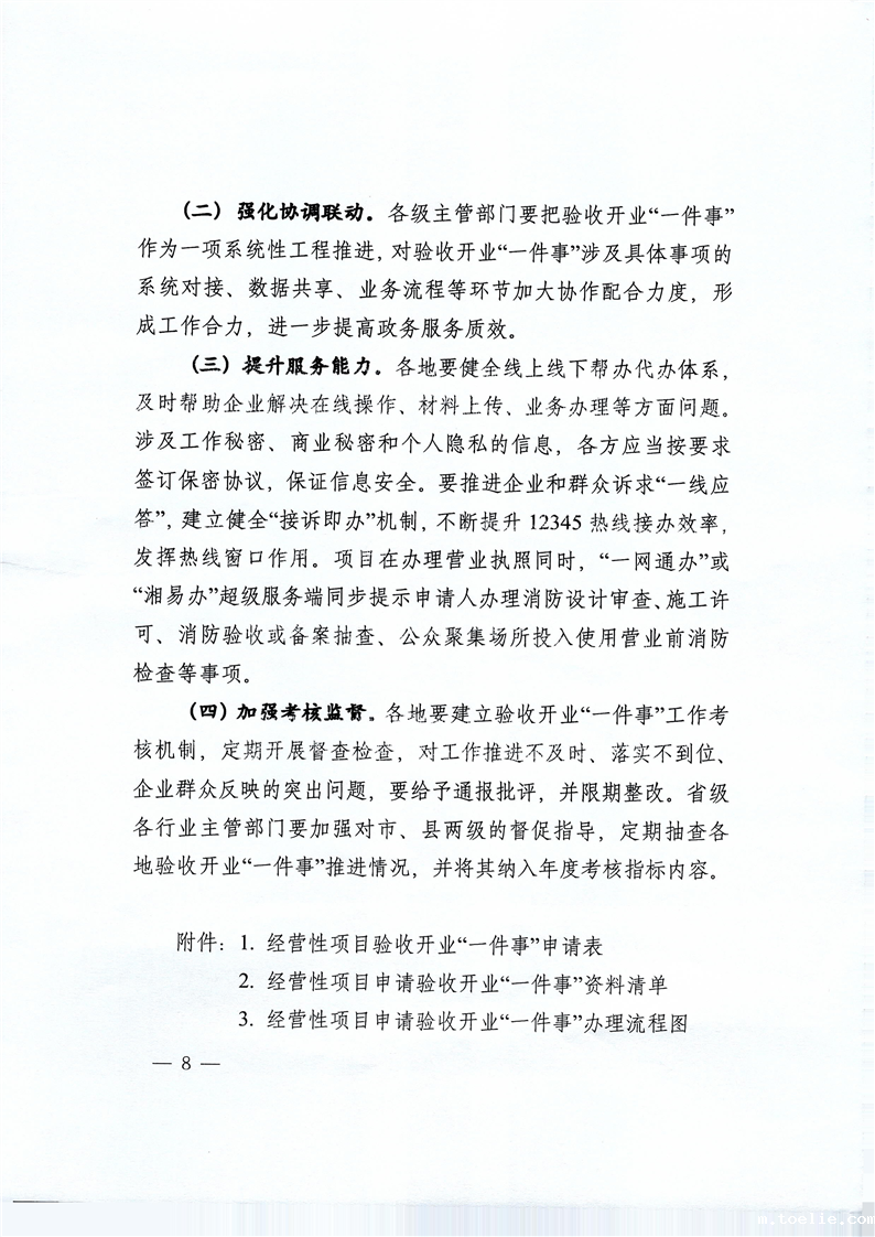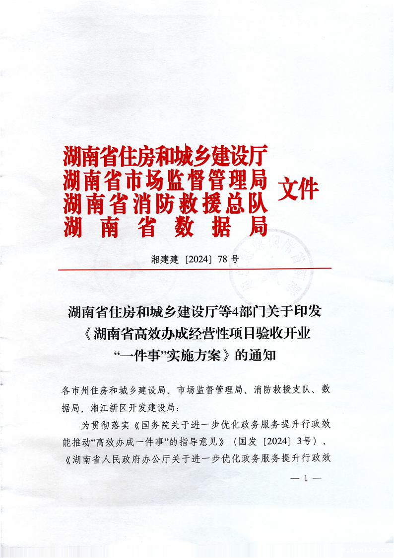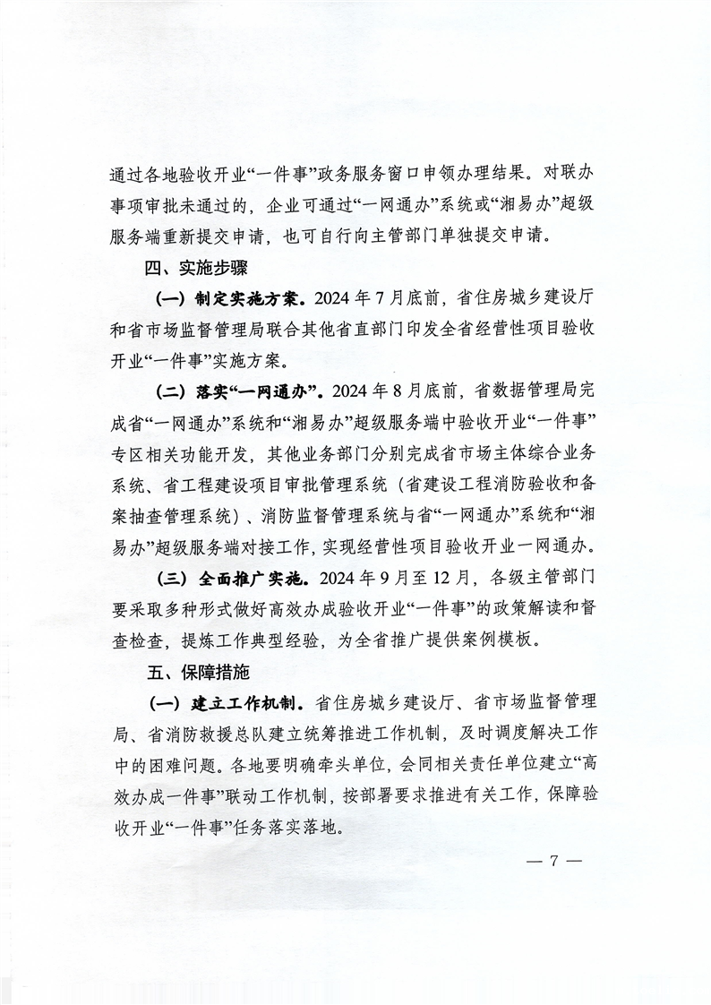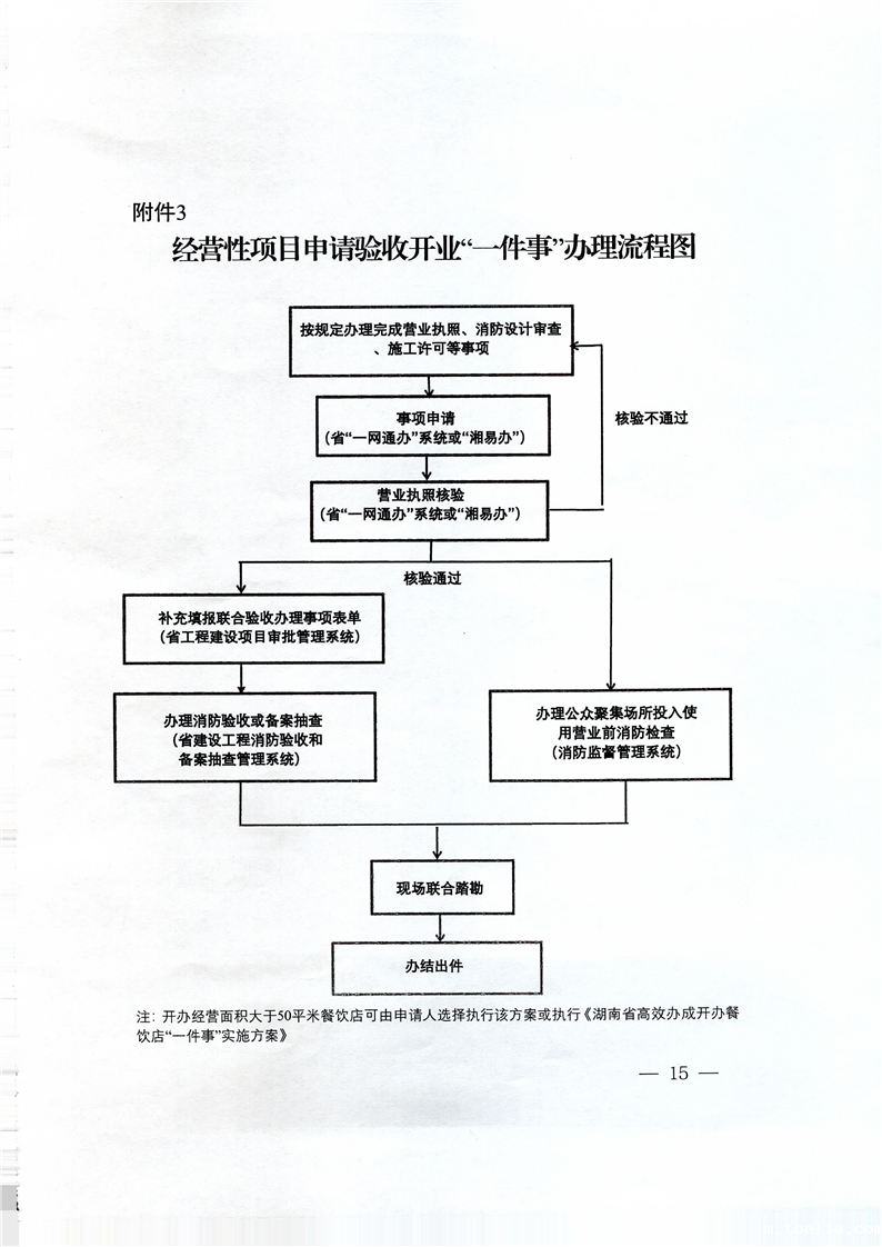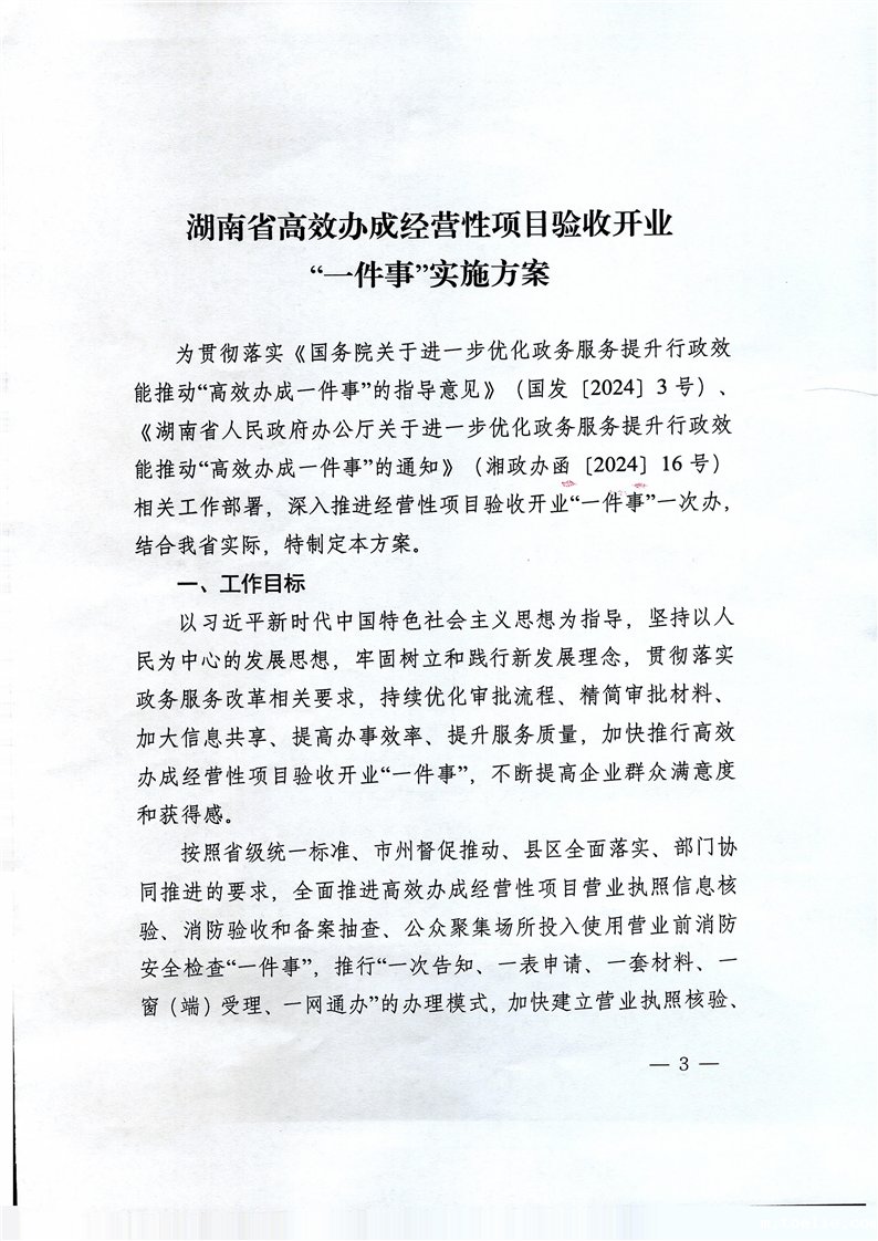 湖南省高效办成经营性项目验收开业“一件事”实施方案