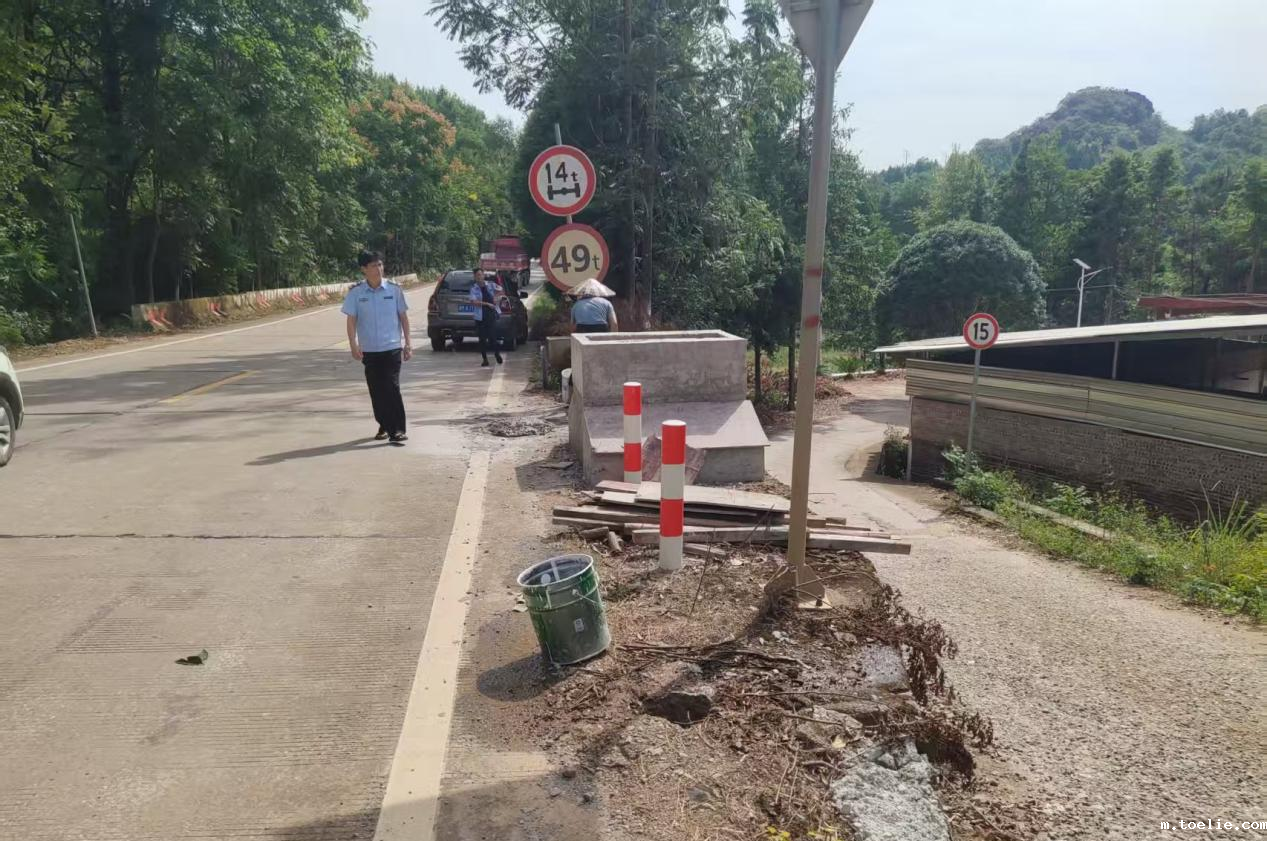 近日,柏家坪镇综合执法队与县交通运输局执法大队开展联合行动,依法制止了一起在S229省道边违规设立村碑的行为,及时消除了道路交通安全隐患,有效维护了路产路权。